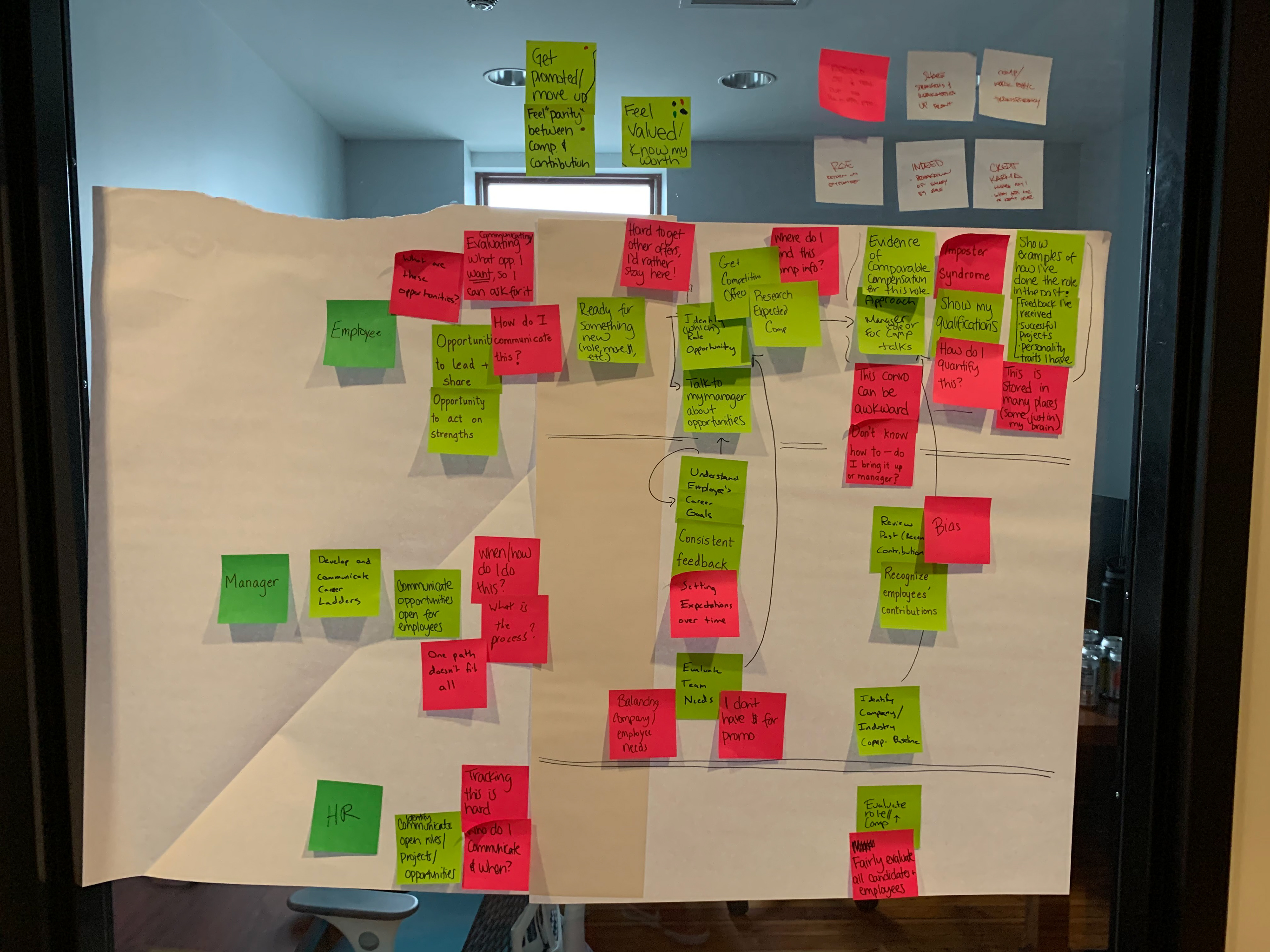 I conducted a few workshops to gather insights. I created an Experience Map for various personas to help find and uncover pain points at high-growth tech companies. Our product is unique in the sense that we have various different users: coaches, clients, learning & development leaders, HR, managers, etc. They all interact and have different needs and require different levels of information to make important organizational decisions.