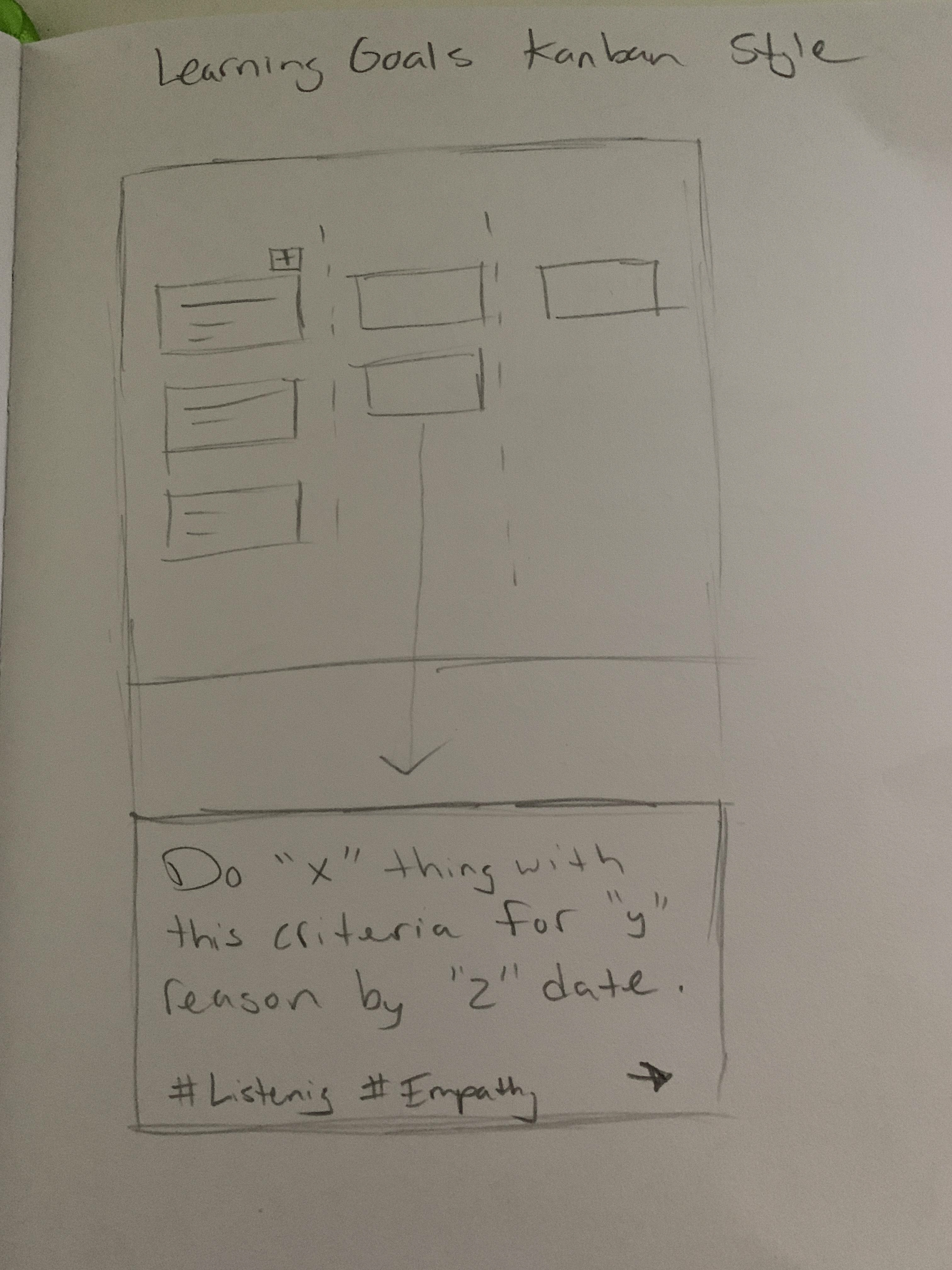 I like to work backward from "perfect". So asking "what is the main problem we are trying to solve" is normally heard coming out of my mouth. Users wanted to track progress across their open LGs and this compact row of cards allowed that. Previously, learning goals displayed visuals that supported the zero to one-hundred completion model. The problem with that model is that it's virtually impossible to apply to all goal types. Your coach can tell you to read a book and yes, you can be at 50% of your goal if you are halfway through the book. If your goal is to make more eye contact with co-workers to help with your listening skills, that is a harder goal to track.